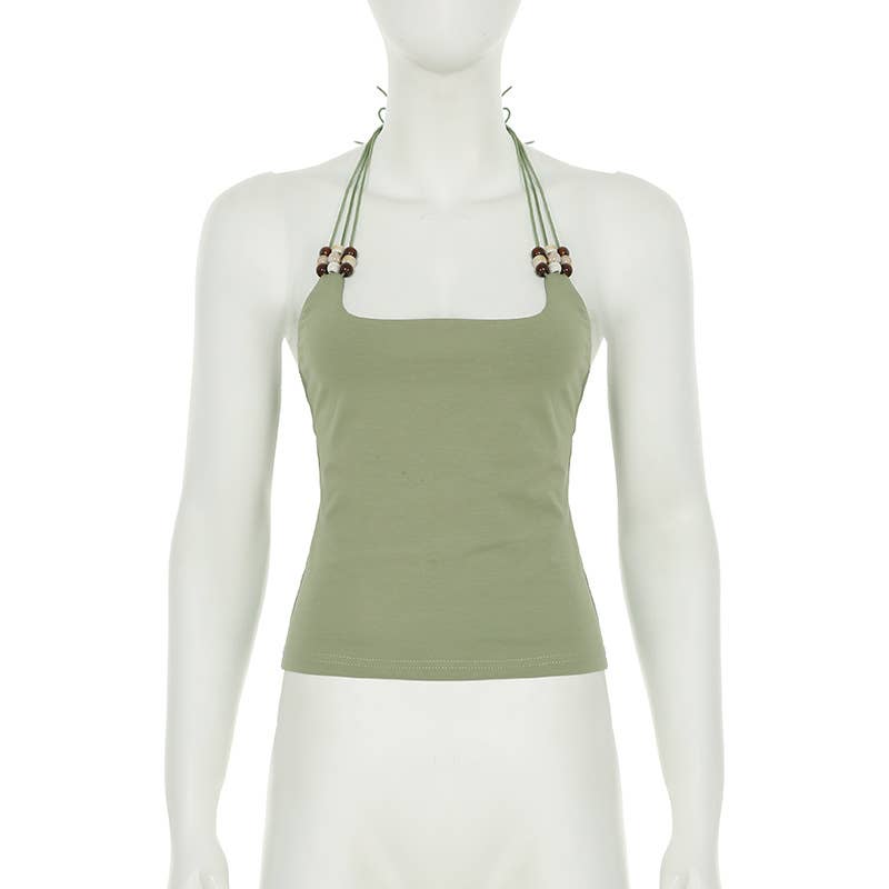 Designed to complement everyday outfits, the Vintage Beaded Halter Strap Design Sexy Halter brings a refined yet wearable feel.