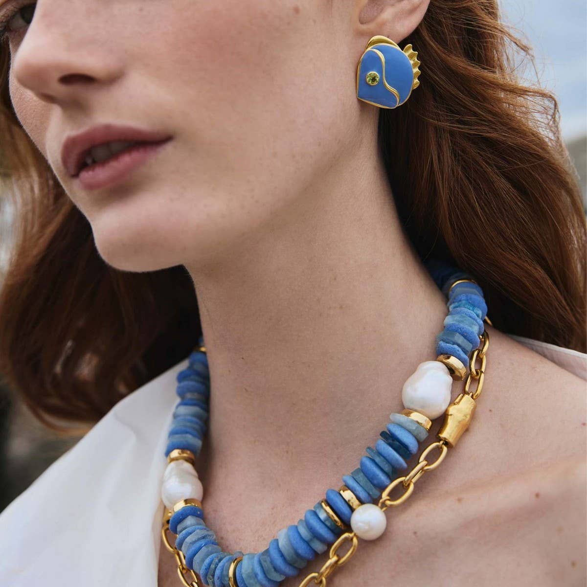 Designed to complement everyday outfits, the Vintage Blue Fish Stud Earrings Gold Plated brings a refined yet wearable feel.
