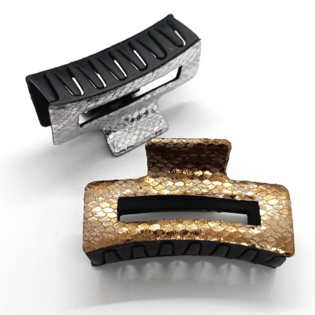 With a clean silhouette and easy wearability, the Vintage Gold Metallic Snake Skin Hair Claw fits seamlessly into your rotation.