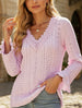 Vintage Hollow Crochet V-Neck Long Sleeve Shirt