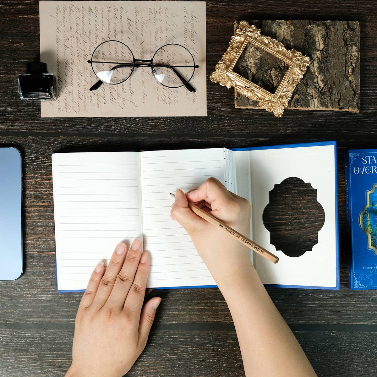 Vintage Oil Painting Star And Moon Blue Notebook_Cwmm1842