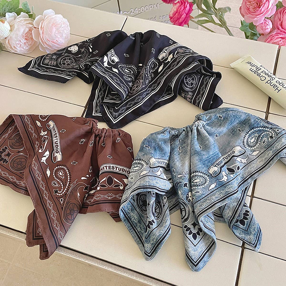 Designed to complement everyday outfits, the Vintage Paisley Denim Blue Bandana Hair Tie brings a refined yet wearable feel.