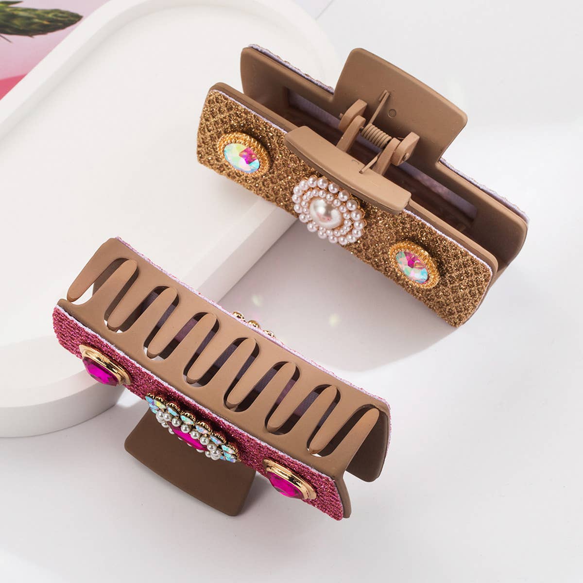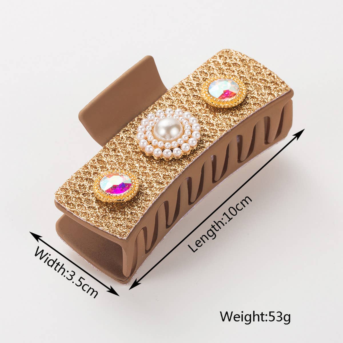 Designed to complement everyday outfits, the Vintage Pearl Turquoise Hair Claw Square Bun Clip_Cwaha1769 brings a refined yet wearable feel.