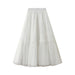 Vintage Pleated Lace Trim Tulle Maxi Skirt_Cwbms0348
