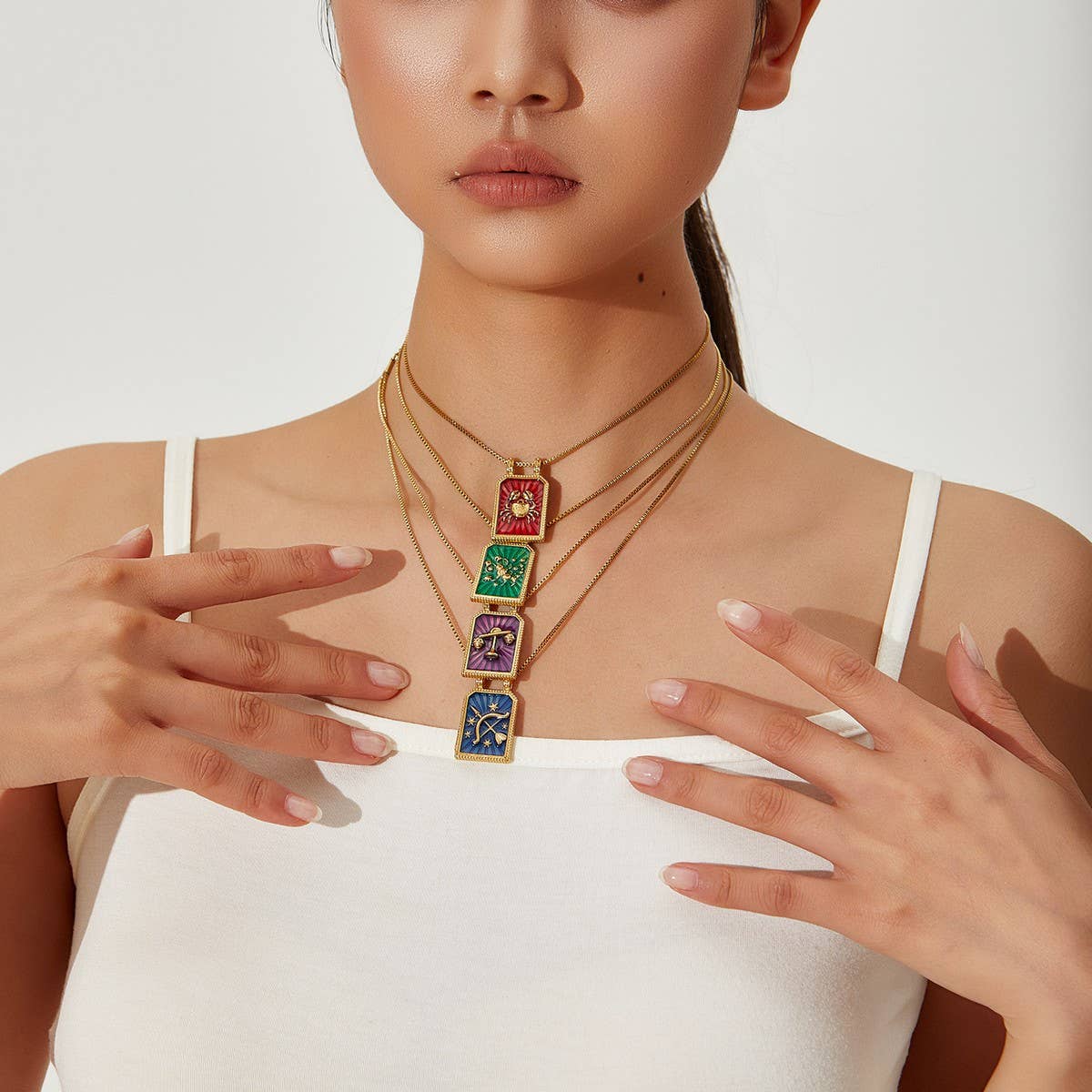 Vintage Square Zodiac Necklace With Enamel_Cwmm8840