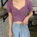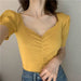 Designed to complement everyday outfits, the Vintage V-Neck Puffy Sleeve Knit Base T-Shirt brings a refined yet wearable feel.