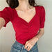 Vintage V-Neck Puffy Sleeve Knit Base T-Shirt
