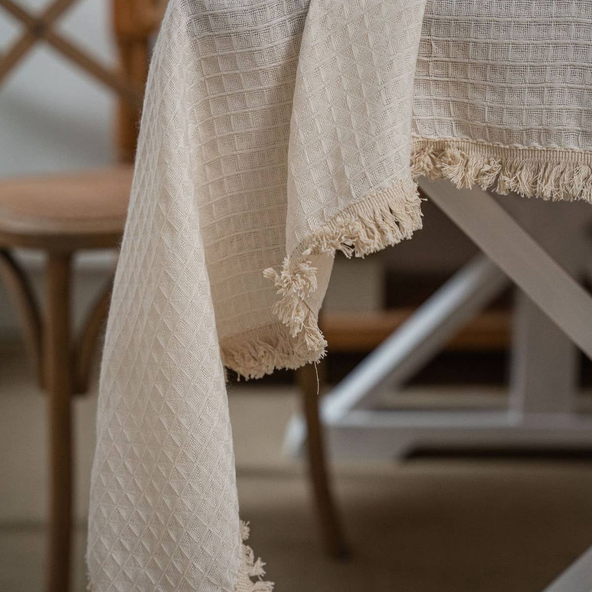A versatile addition to your wardrobe, the Waffle Tassel Solid Color Dining Table_Cwmm0971 works across multiple occasions.