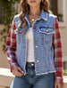 xWashed long-sleeved plaid tassel denim jacket