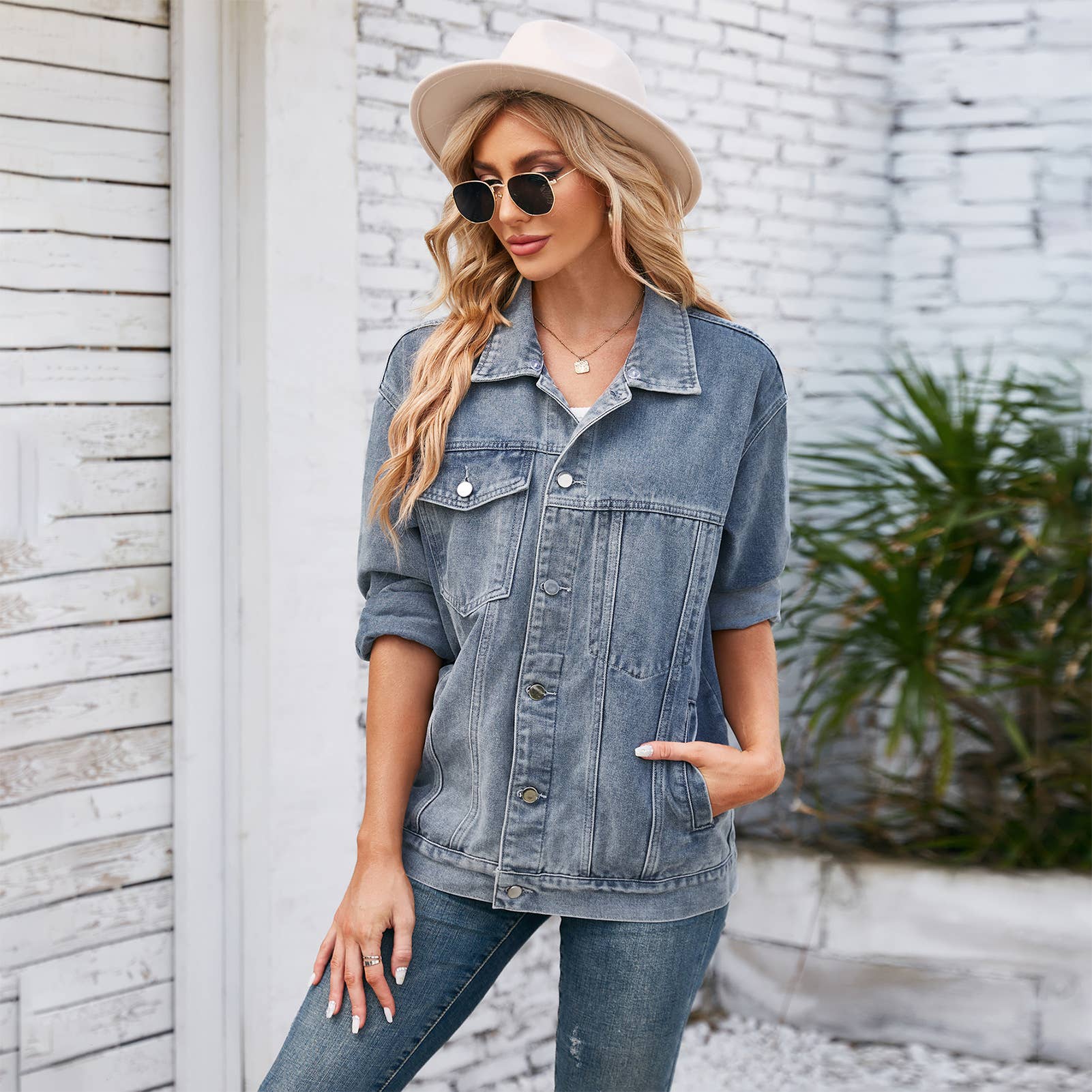 Designed to complement everyday outfits, the Washed Loose Denim Jacket Mid-Length Top brings a refined yet wearable feel.