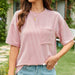 This Wavy Striped Short Sleeve Pocket T-Shirt balances modern styling with practical comfort for daily wear.