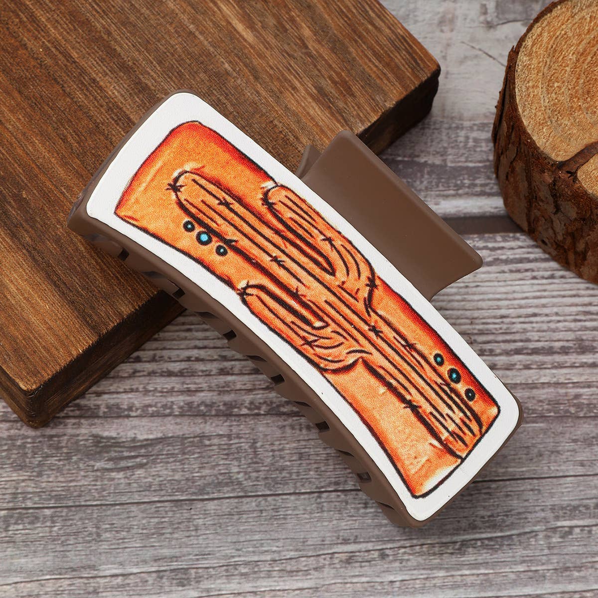 Western Cactus Leather Hair Claw Shark Clip_Cwasc1629
