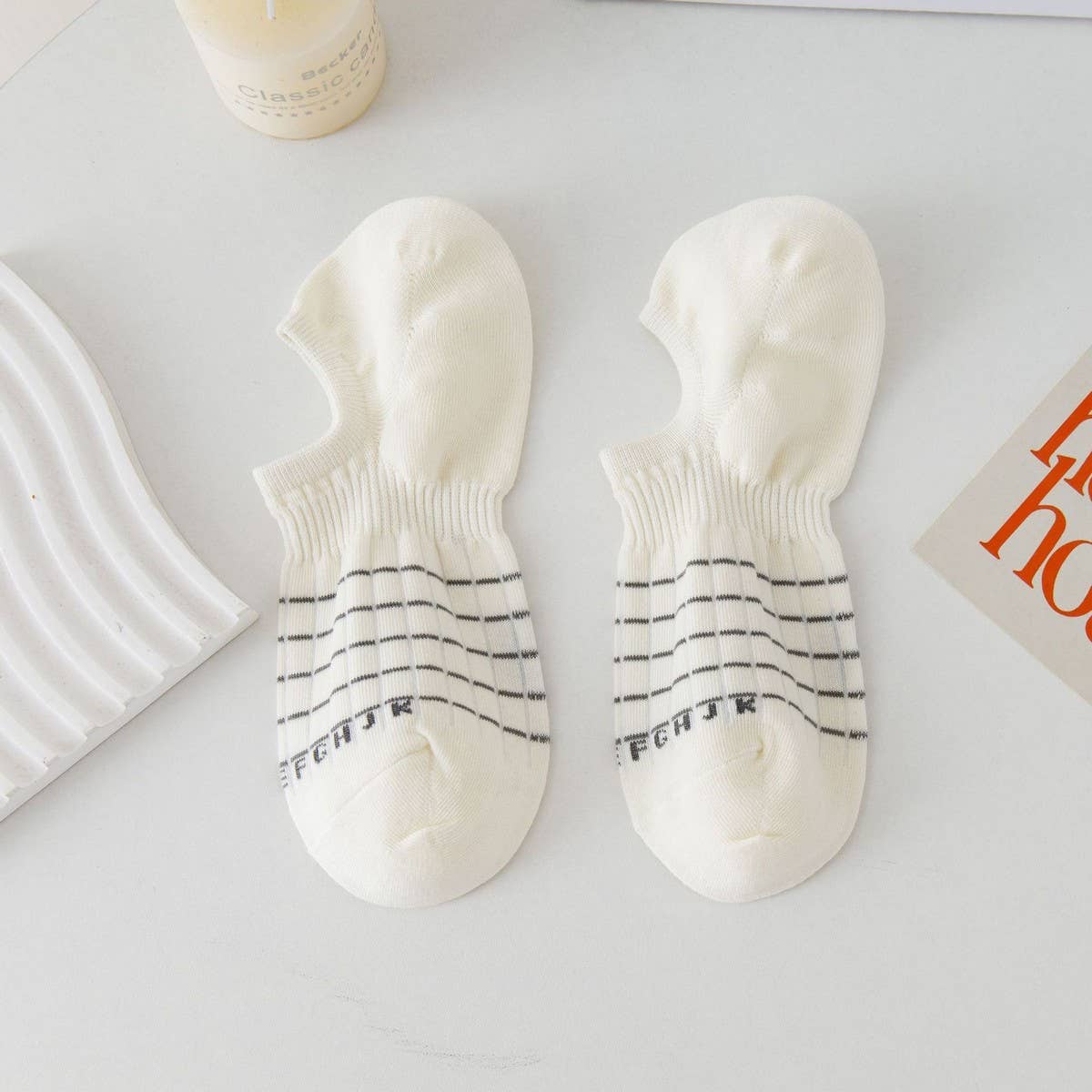 White Striped Waist Wicking Hidden Socks_Cwms0947