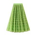 White Tulle Tiered Pleated A-Line Maxi Skirt_Cwbms0369