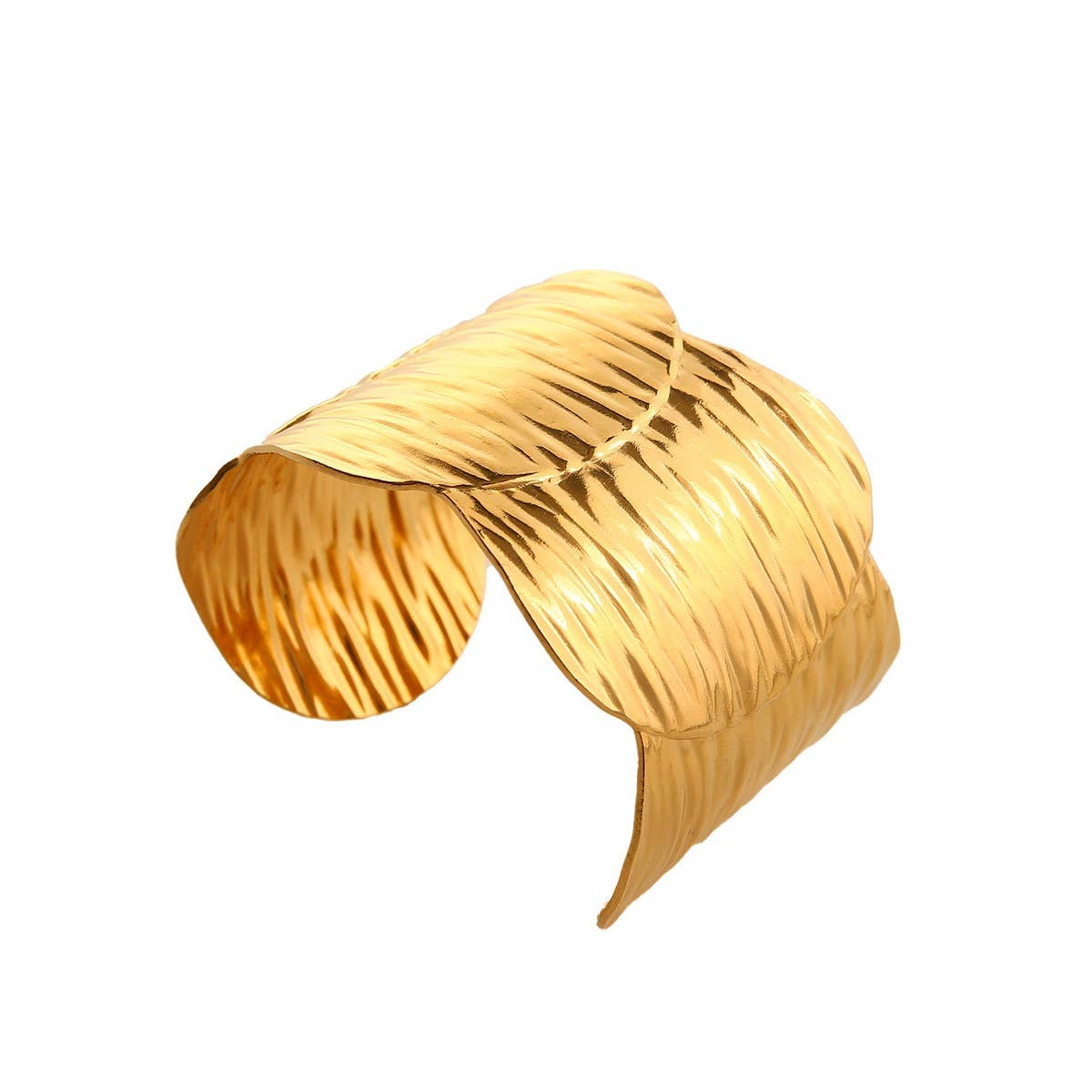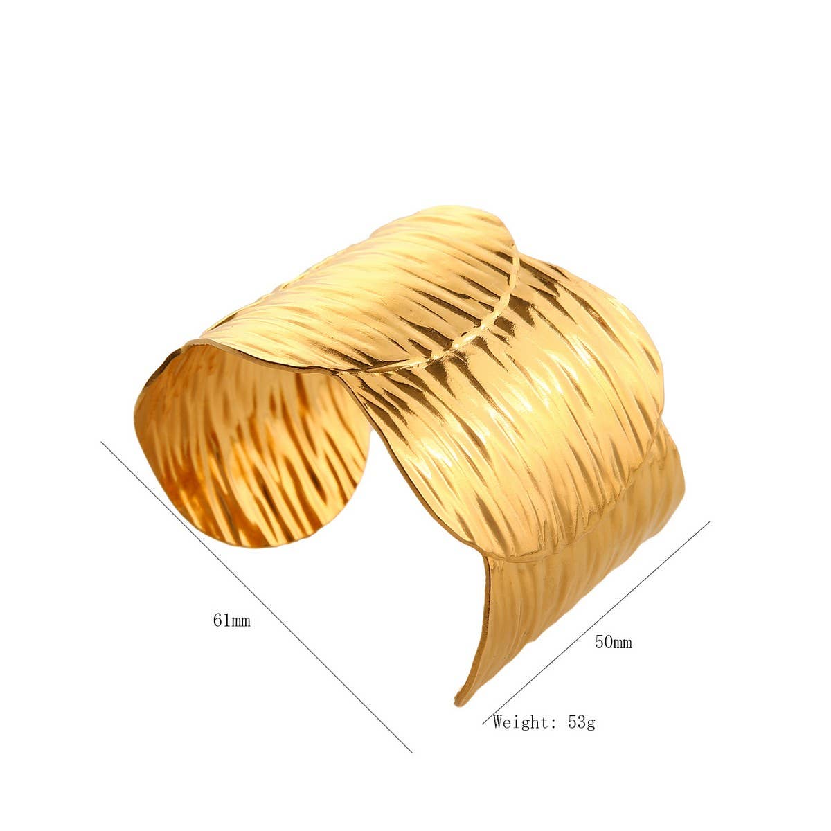 The Wide Irregular Open Cuff In 18K Stainless Steel delivers a polished look while remaining comfortable and functional.