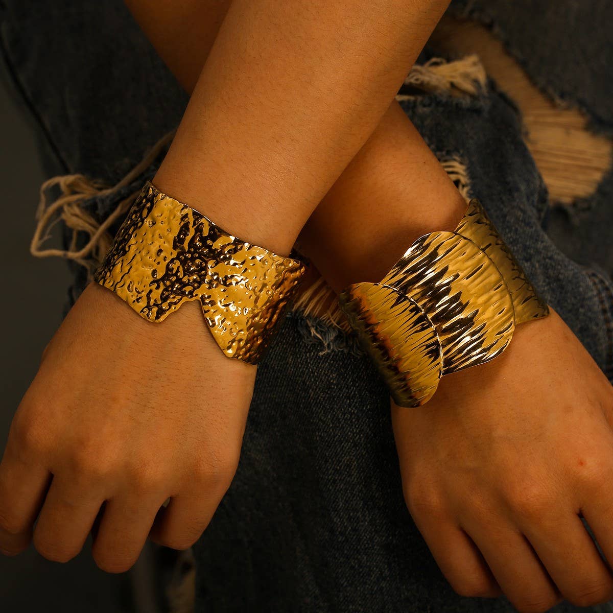 Wide Irregular Open Cuff In 18K Stainless Steel