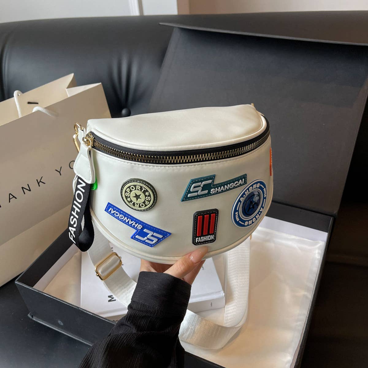 This Wide Letter Shoulder Belt Bag Crossbody Bag_Cwab2069 balances modern styling with practical comfort for daily wear.