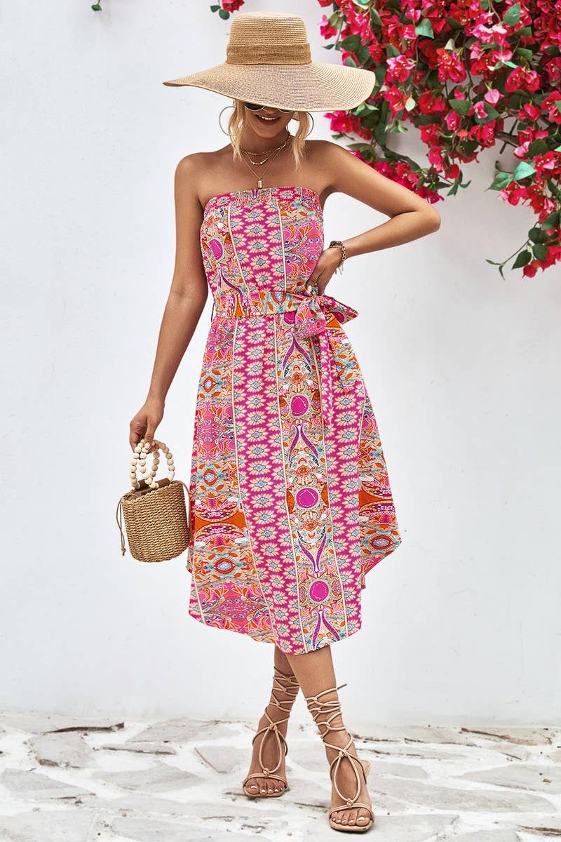 Designed to complement everyday outfits, the Women Fit Strapless Print Dress_Cwdsd2643 brings a refined yet wearable feel.