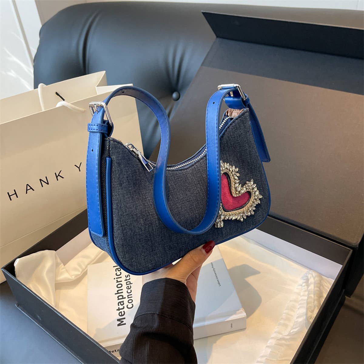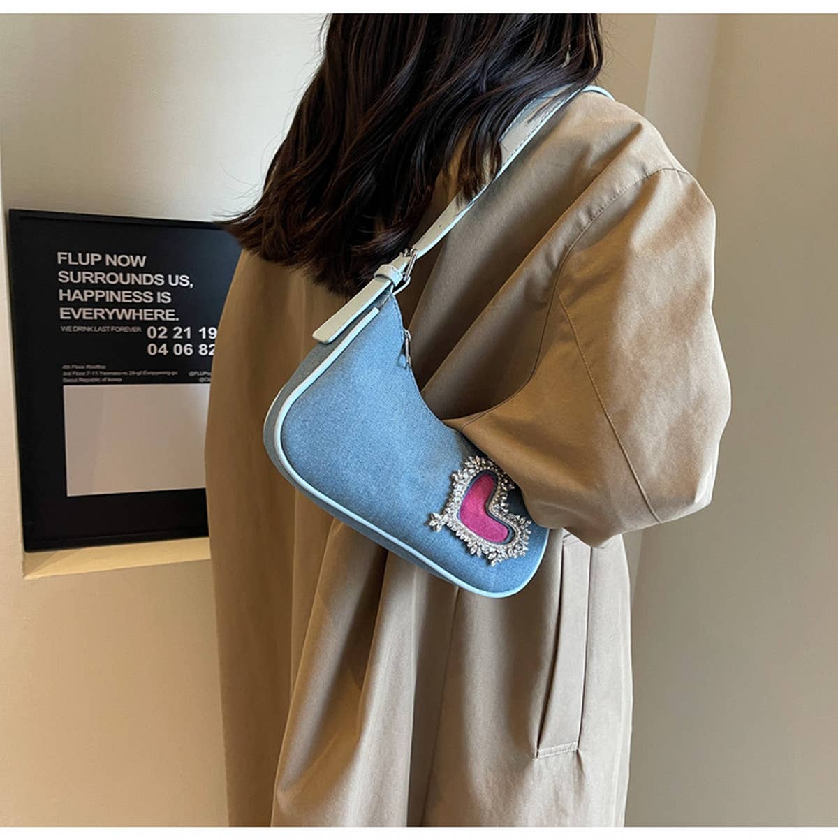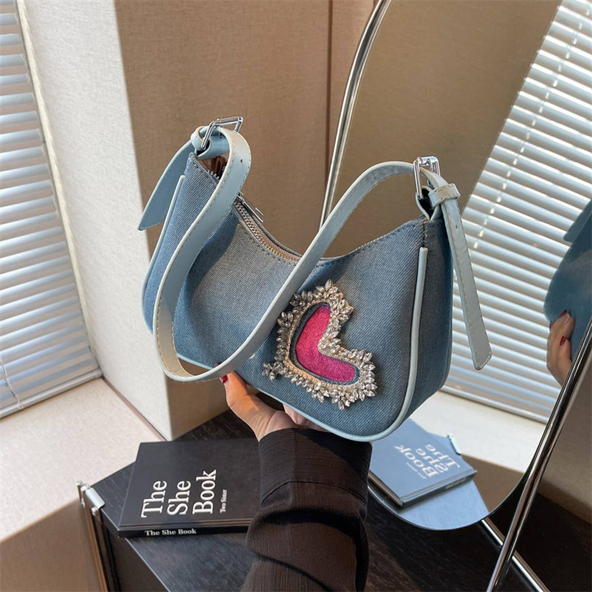With a clean silhouette and easy wearability, the Women Heart Rhinestone Armpit Bag_Cwab1593 fits seamlessly into your rotation.