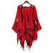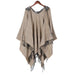 Women Hooded Tassel Split Shawl Wrapped Cloak