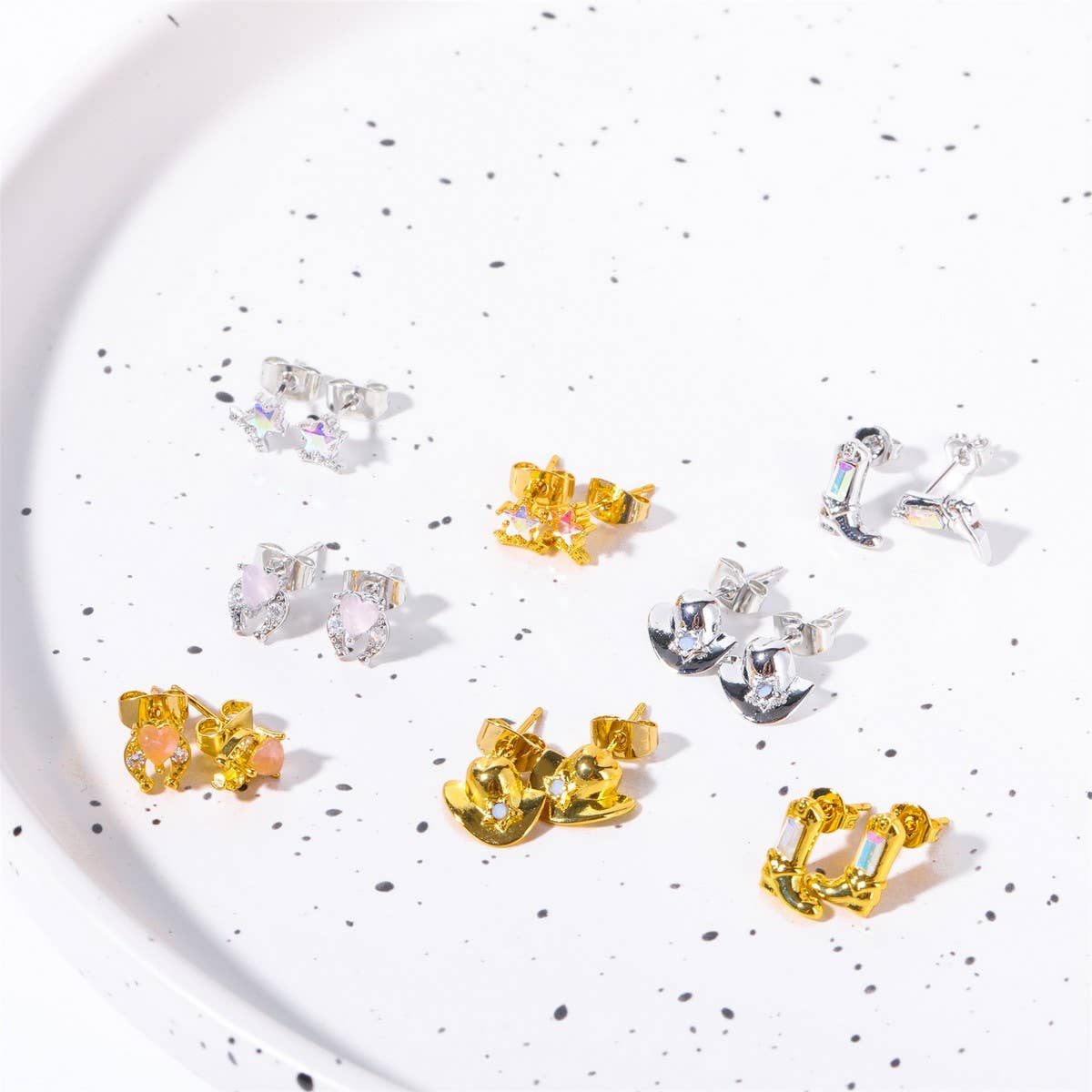 Womens Cowboy Boots Hat Horseshoe Stud Earrings_Cwaje5075
