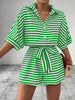 Womens Striped Buttoned Cardigan Romper