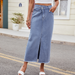 This Wome Washed Denim Maxi Skirt Asymmetrical_Cwjsk0205 balances modern styling with practical comfort for daily wear.