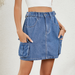 Wome Washed Denim Mini Skirt Adjustable Waist_Cwjsk0215