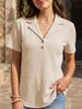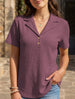 A versatile addition to your wardrobe, the Women's lapel waffle knit casual short-sleeved top works across multiple occasions.