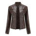 Womens Leather Stand-Up Collar Jacket