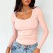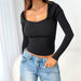 Womens Slim-Fit U-Neck Long Sleeve Top