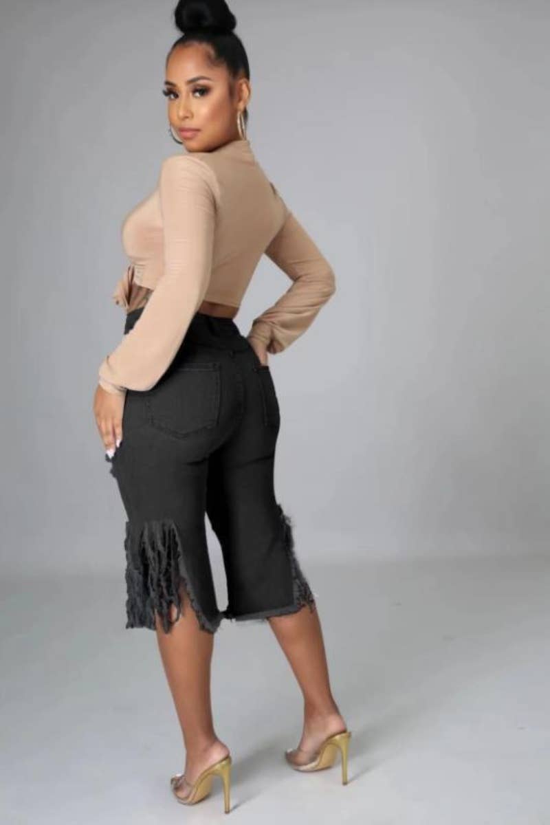 The Womens Stretch Jeans With Ripped Fringe_Cwjs0167 delivers a polished look while remaining comfortable and functional.