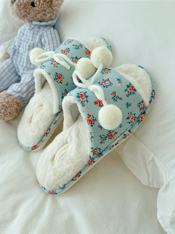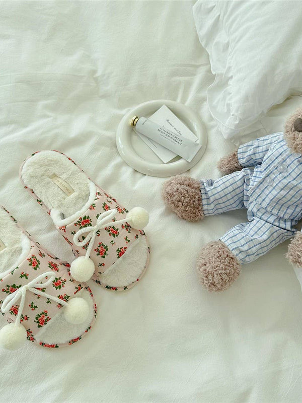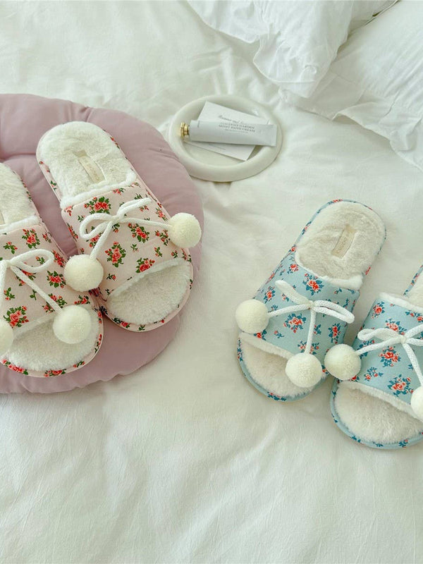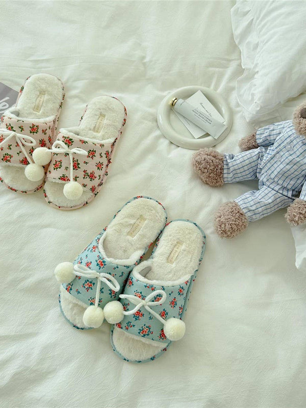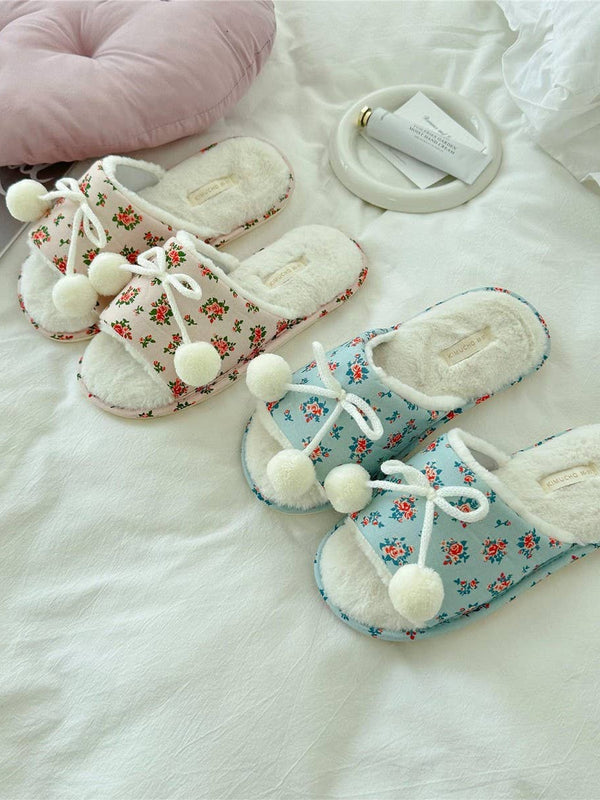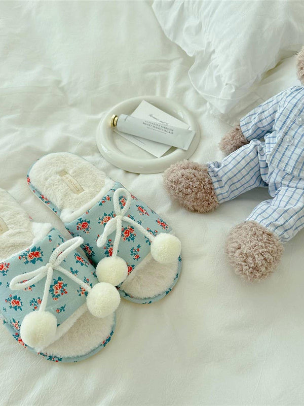 Womens Winter Fur Ball Style Open Toe Slippers_Cwmm2985