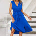 Woven V Neck Lace Up Waist A Swing Dress_Cwdsd3110