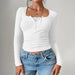 A versatile addition to your wardrobe, the Y2K Slim Trim Lace Button U Neck Ribbed Top works across multiple occasions.