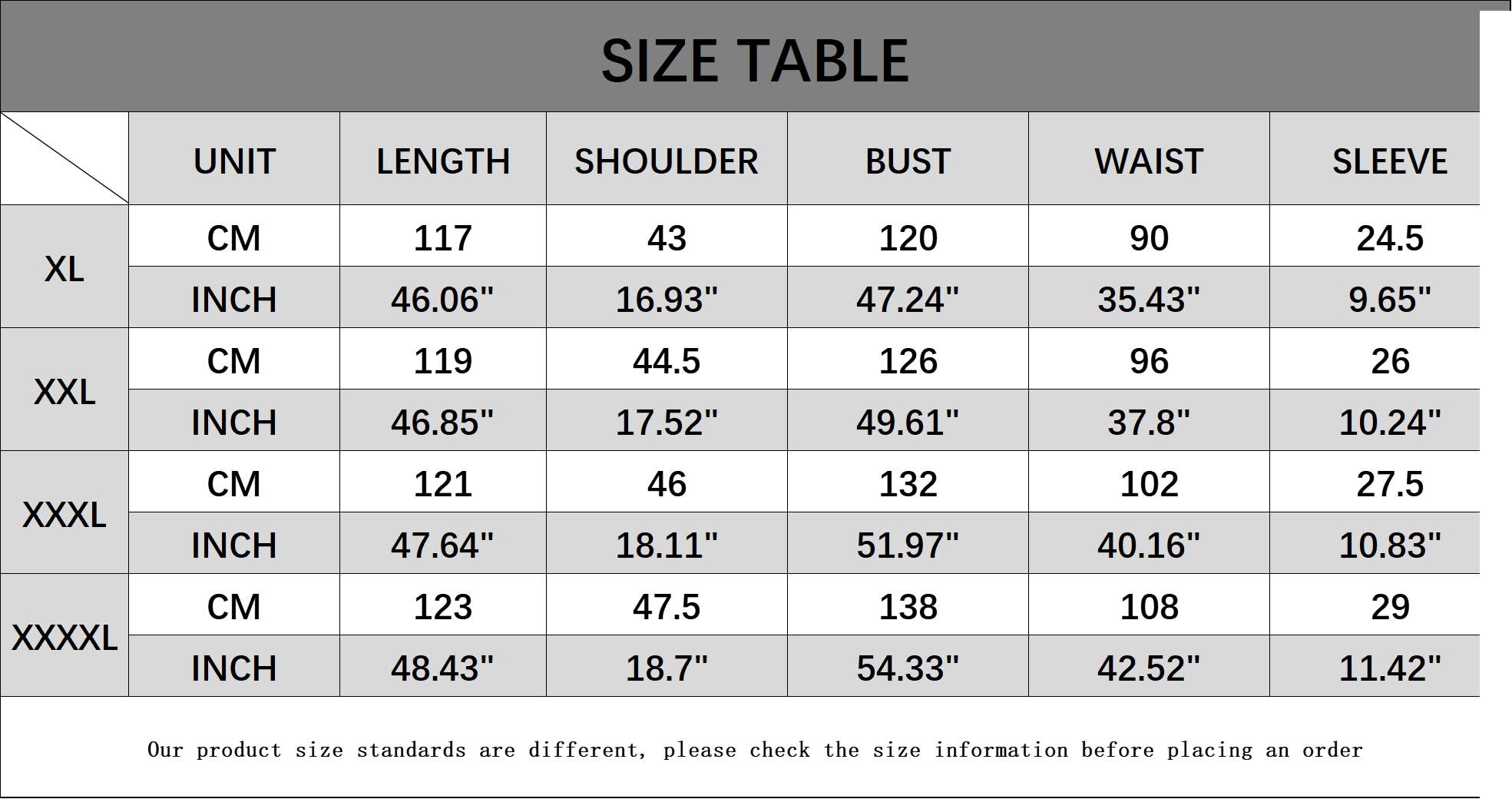 Size: XL,XXL,XXXL,XXXXL